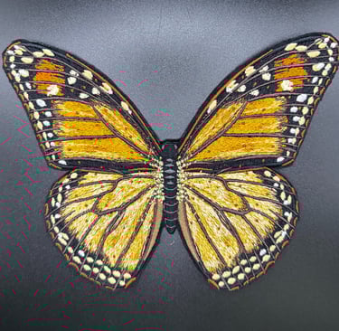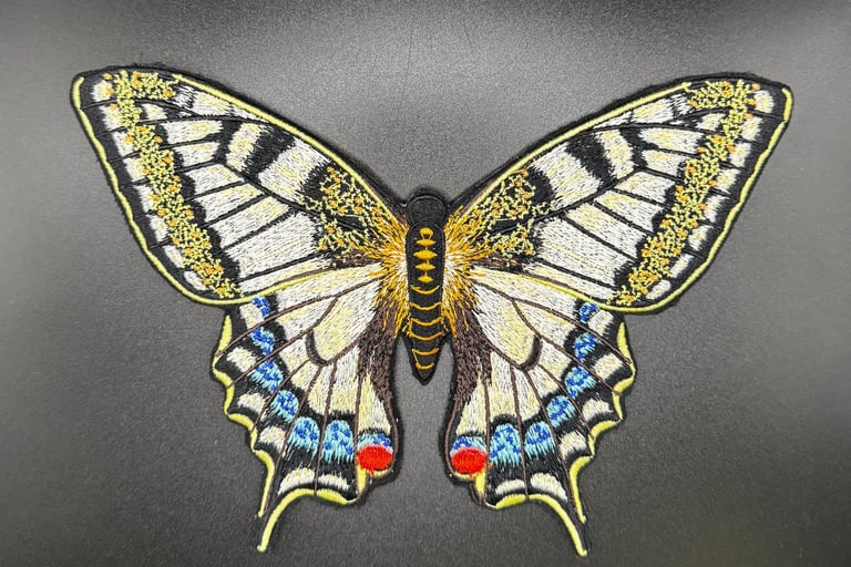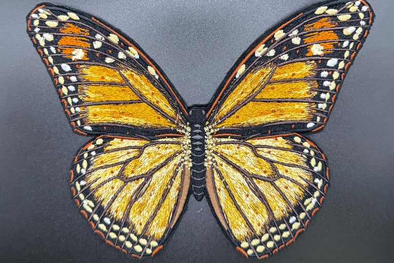 Premium butterflies feature significantly higher stitch density and more detailed thread work compared to our Felt Collection, creating sharper lines, deeper texture, and a more refined finish.